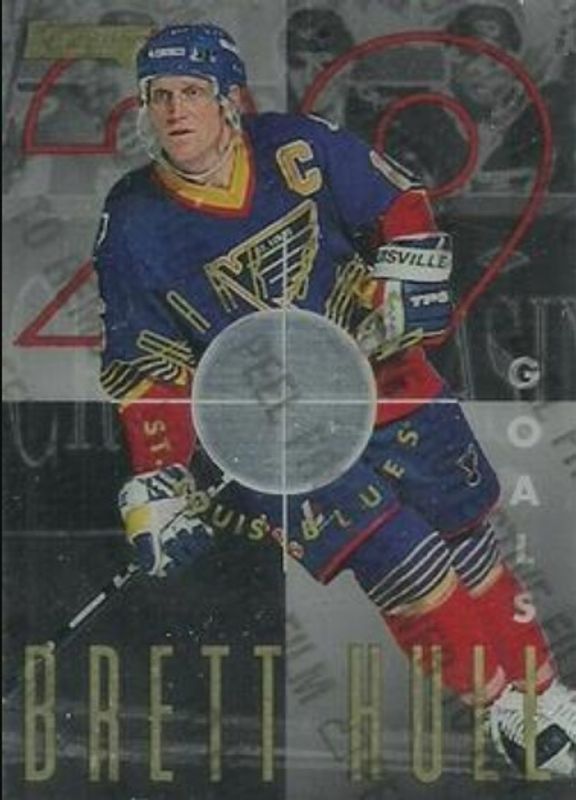 The Brett Hull 1995 Donruss #7 Marksmen card is 1 of 3 Brett Hull's card variations in the 1995 Donruss set being tracked by Sports Card Investor, including Base, and Pro Pointers.