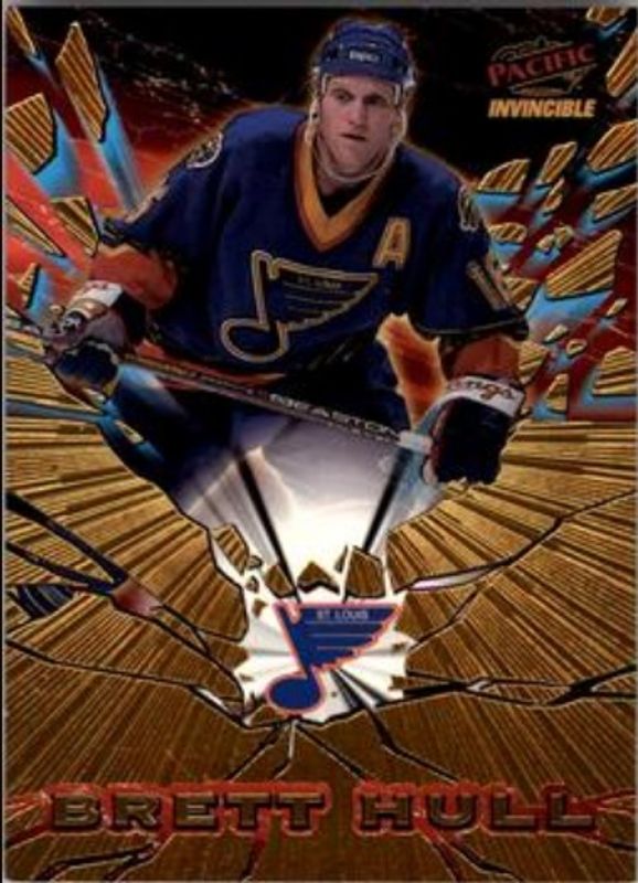 The Brett Hull 1997 Pacific Invincible #31 Feature Performers card is 1 of 10 Brett Hull's card variations in the 1997 Pacific Invincible set being tracked by Sports Card Investor, including Base, Copper, Emerald Green, Ice Blue, and Red.