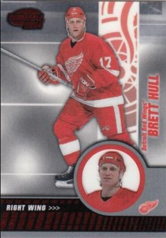 The Brett Hull 2003 Pacific Invincible #33 Red /850 card is 1 of 5 Brett Hull's card variations in the 2003 Pacific Invincible set being tracked by Sports Card Investor, including Base /799, Retail, Blue /350, and Top Line.