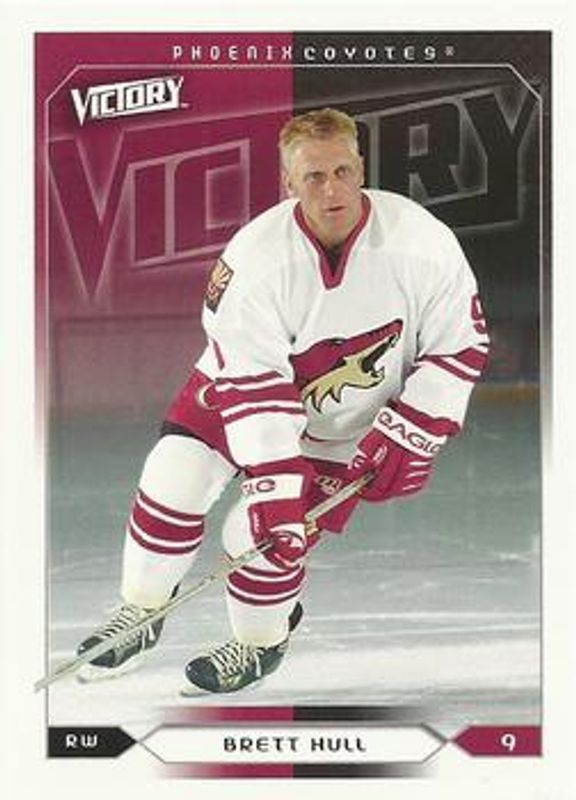 The Brett Hull 2005 Upper Deck Victory #148 Base card is 1 of 7 Brett Hull's card variations in the 2005 Upper Deck Victory set being tracked by Sports Card Investor, including Silver /250, Gold /100, Black /5, Blow up Cards, and Game Breakers.