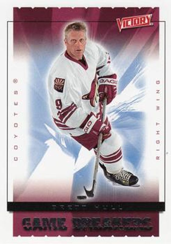 The Brett Hull 2005 Upper Deck Victory #GB34 Game Breakers card is 1 of 7 Brett Hull's card variations in the 2005 Upper Deck Victory set being tracked by Sports Card Investor, including Base, Silver /250, Gold /100, Black /5, and Blow up Cards.