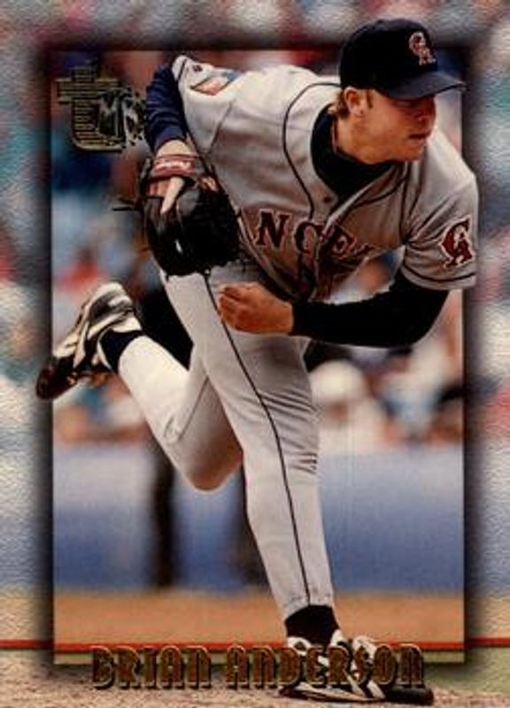 The Brian Anderson 1995 Topps Embossed #11 Base card is 1 of 2 Brian Anderson's card variations in the 1995 Topps Embossed set being tracked by Sports Card Investor, including Golden Idols.