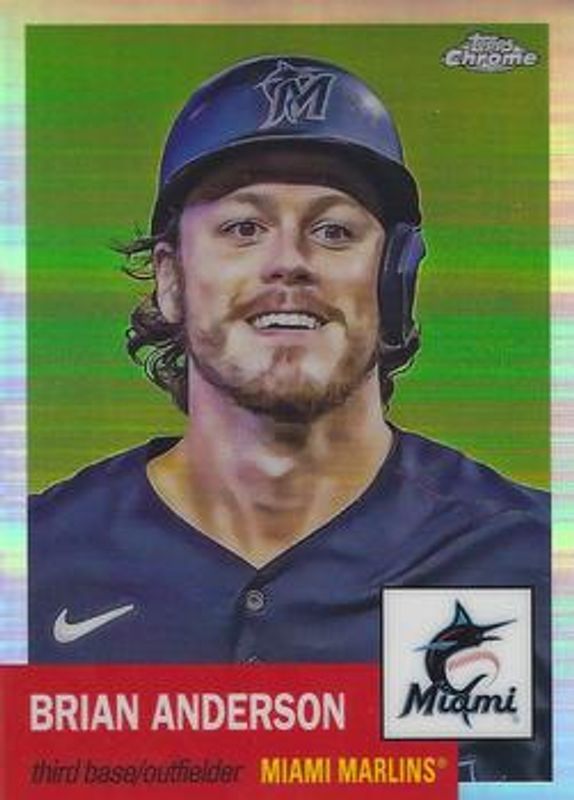 The Brian Anderson 2022 Topps Chrome Platinum Anniversary #403 Refractor card is 1 of 34 Brian Anderson's card variations in the 2022 Topps Chrome Platinum Anniversary set being tracked by Sports Card Investor, including Base, Black & White Mini Diamond Refractor, Blue Prism Refractor, Gold Prism Refractor, and Prism Refractor.