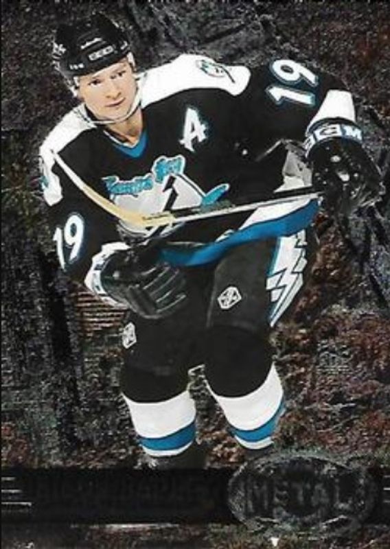 Other popular players in the 1996 Fleer Metal Universe set include Mark Messier, Wendel Clark, Bill Ranford, Adam Oates, and Theo Fleury.
