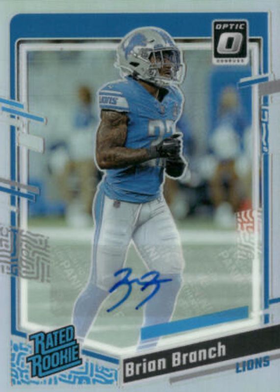 2023 Donruss Optic Brian Branch RC Rated Rookie Holo Auto /150 Silver Lions