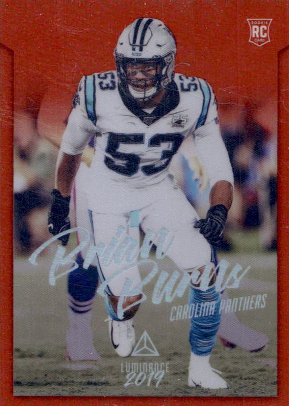 This card is 1 of 7 Brian Burns' card variations in the 2019 Chronicles set being tracked by Sports Card Investor, including Luminance Update, Luminance Update - Red /99, Luminance Update - Blue /75, Luminance Update - Green /49, and Luminance Update - Gold /10.