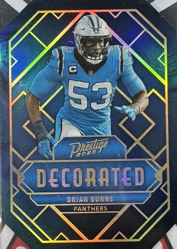 The Brian Burns 2023 Prestige #D-4 Decorated /(SSP) card in Raw condition has not changed in price in the last 30 days and was last sold for $16.99 .