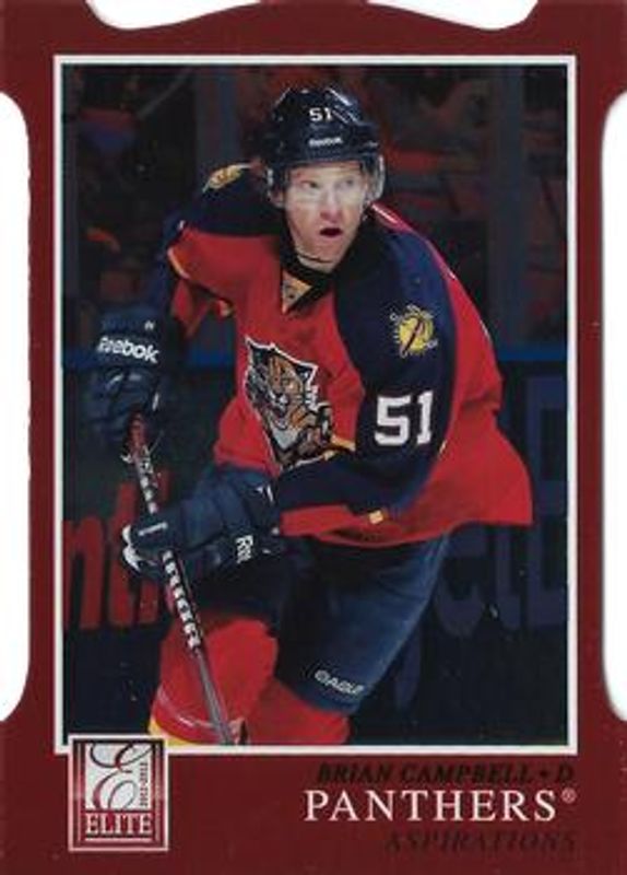 The Brian Campbell 2011 Elite #189 Aspirations /99 card is 1 of 3 Brian Campbell's card variations in the 2011 Elite set being tracked by Sports Card Investor, including Base /999, and Gold Status die-cut /10.