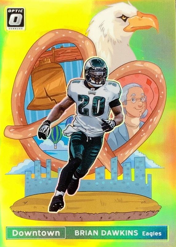 This card is 1 of 5 Brian Dawkins' card variations in the 2021 Optic set being tracked by Sports Card Investor, including Downtown /(SSP), Downtown - Black Pandora /25, Downtown - Gold Vinyl /1, and Downtown - White Sparkle /1.