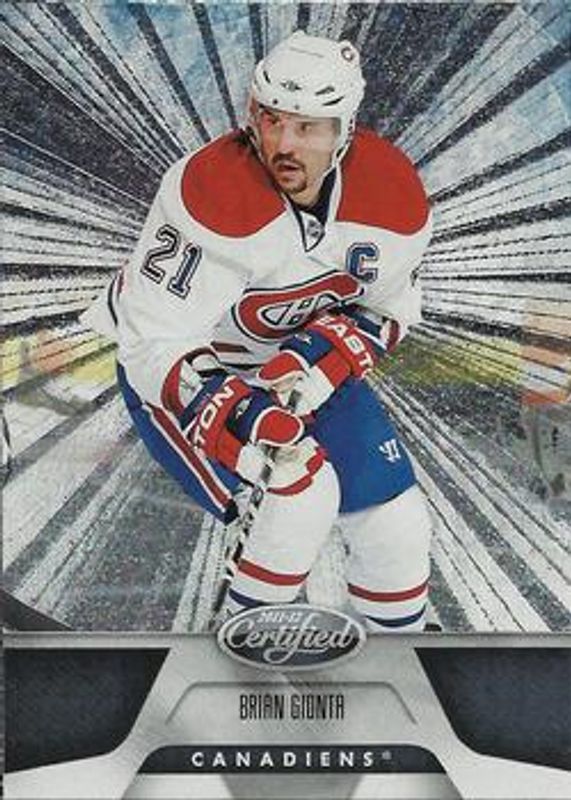 The Brian Gionta 2011 Certified #79 Totally Silver card is 1 of 33 Brian Gionta's card variations in the 2011 Certified set being tracked by Sports Card Investor, including Base /499, Mirror Red /199, Mirror Red Materials Dual /150, Mirror Blue /99, and Mirror Blue Materials /99.