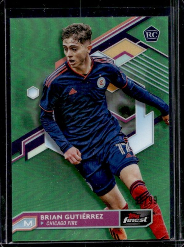 The Brian Gutierrez 2023 Topps Finest MLS #17 Neon Green Refractor /99 card is 1 of 40 Brian Gutierrez's card variations in the 2023 Topps Finest MLS set being tracked by Sports Card Investor, including Base, Refractor, Purple Refractor /250, Speckle Refractor /175, and Blue Refractor /150.