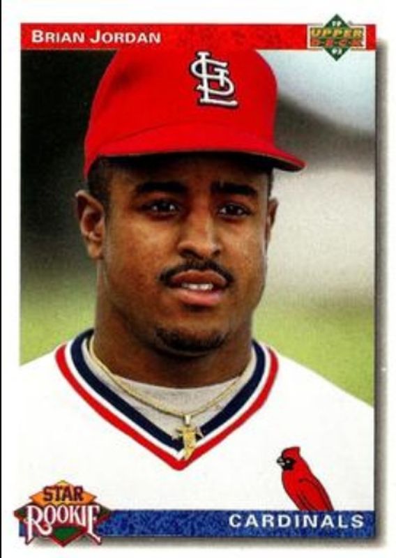 The Brian Jordan 1992 Upper Deck #3 Gold Hologram Rookie card is 1 of 3 Brian Jordan's card variations in the 1992 Upper Deck set being tracked by Sports Card Investor, including Base, and Scouting Report.