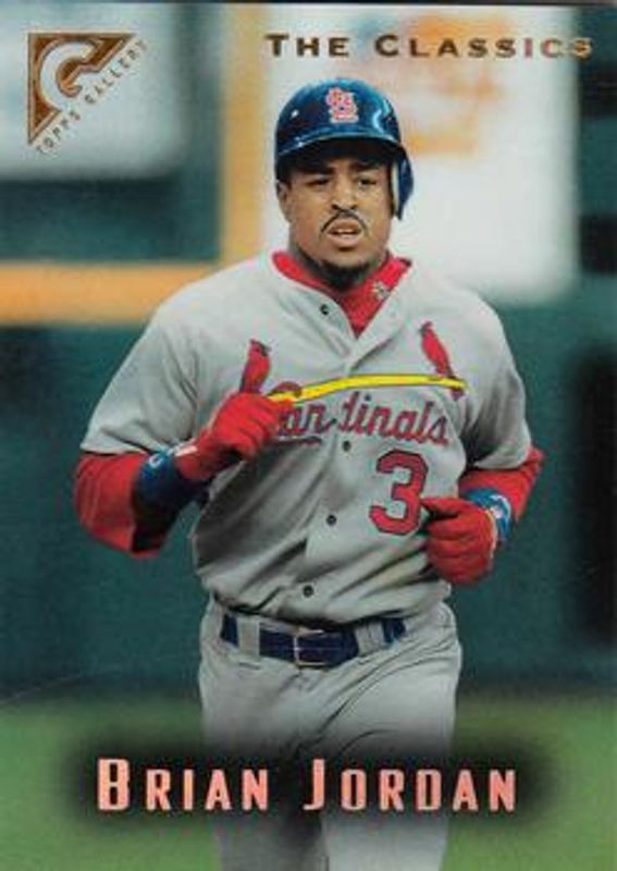The Brian Jordan 1996 Topps Gallery #75 Base card is 1 of 2 Brian Jordan's card variations in the 1996 Topps Gallery set being tracked by Sports Card Investor, including Player's Private Issue /999.