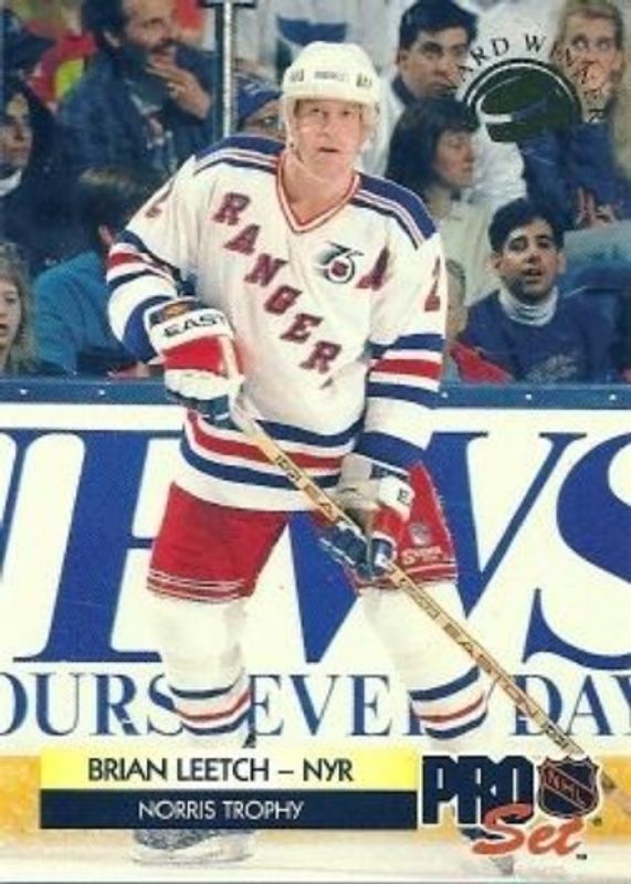 The Brian Leetch 1992 Pro Set #CC4 Award Winners card is 1 of 2 Brian Leetch's card variations in the 1992 Pro Set set being tracked by Sports Card Investor, including Base.