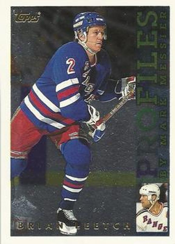 The Brian Leetch 1995 Topps #PF-2 Profiles card is 1 of 6 Brian Leetch's card variations in the 1995 Topps set being tracked by Sports Card Investor, including Base, O-Pee-Chee, Home Grown USA, Mystery Finest, and Mystery Finest Refractor.