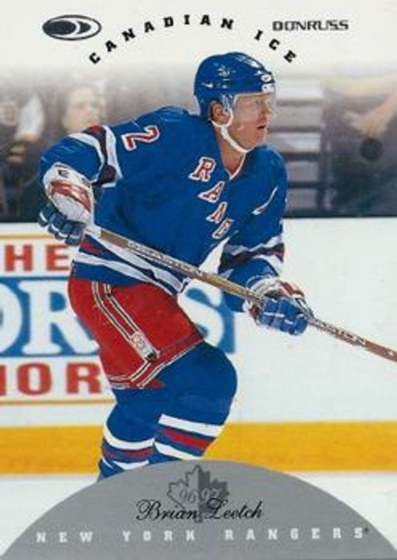 The Brian Leetch 1996 Donruss Canadian Ice #108 Base card is 1 of 3 Brian Leetch's card variations in the 1996 Donruss Canadian Ice set being tracked by Sports Card Investor, including Canadian Gold Press Proofs, and Canadian Red Press Proofs /75.