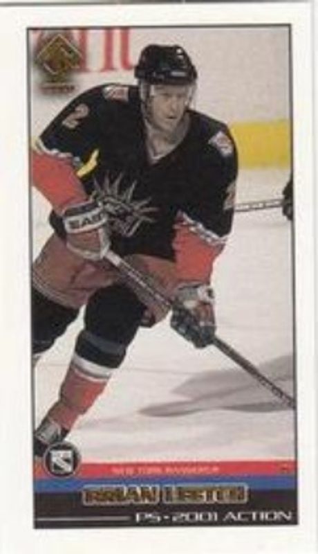The Brian Leetch 2000 Pacific Private Stock #37 PS 2001 Action card is 1 of 9 Brian Leetch's card variations in the 2000 Pacific Private Stock set being tracked by Sports Card Investor, including Base /155, Retail /230, Silver /120, Gold /75, and Premiere Date /60.