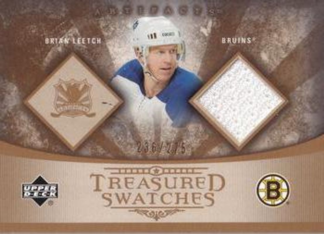 The Brian Leetch 2005 Upper Deck Artifacts #TS-BL Treasured Swatches /275 card is 1 of 27 Brian Leetch's card variations in the 2005 Upper Deck Artifacts set being tracked by Sports Card Investor, including Treasured Swatches Copper /125, Auto Facts /100, Auto Facts Copper /75, Treasured Swatches Dual /65, and Auto Facts - Silver /50.