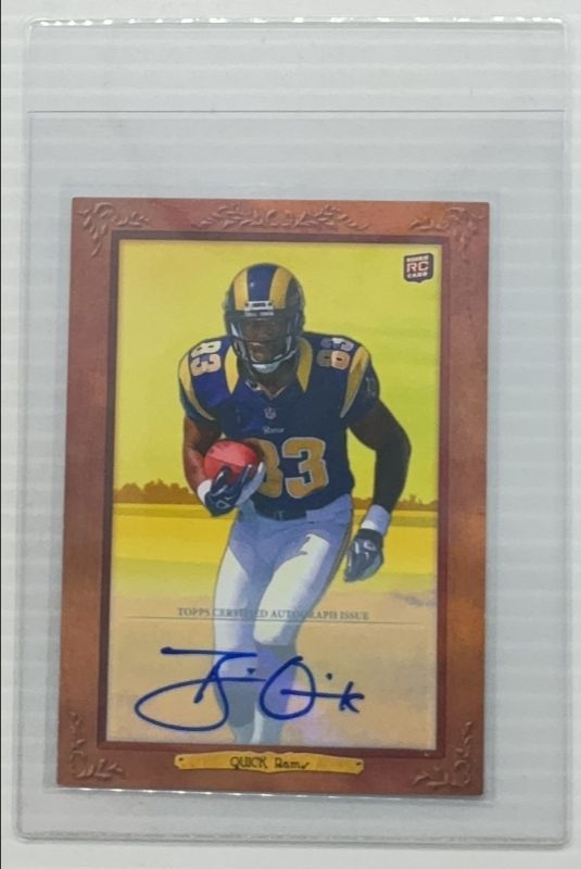 The Brian Quick 2012 Topps Turkey Red #25 Autographs /5 Rookie card is 1 of 8 Brian Quick's card variations in the 2012 Topps Turkey Red set being tracked by Sports Card Investor, including Base, Printing Plate Black /1, Printing Plate Cyan /1, Printing Plate Magenta /1, and Printing Plate Yellow /1.