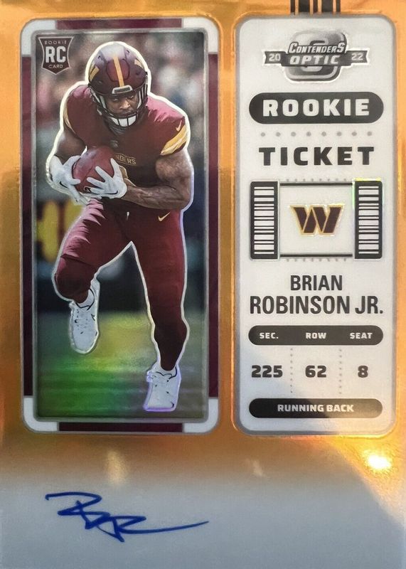 Auctions Ending Soon for Brian Robinson Jr. 2022 Contenders Optic #106 Rookie Ticket Auto - Orange /50 RAW