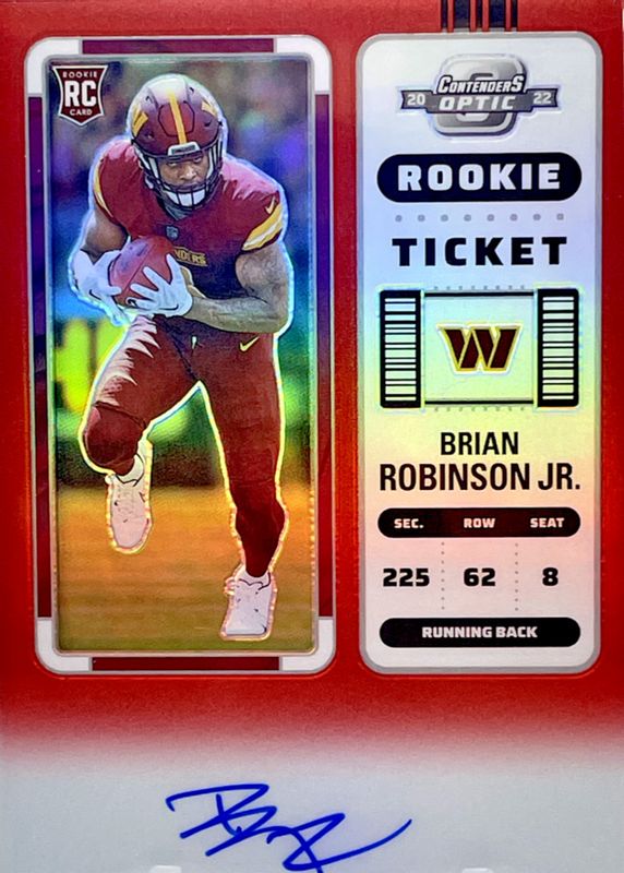 Best Prices Available For Sale of Brian Robinson Jr. 2022 Contenders Optic #106 Rookie Ticket Auto - Red /149