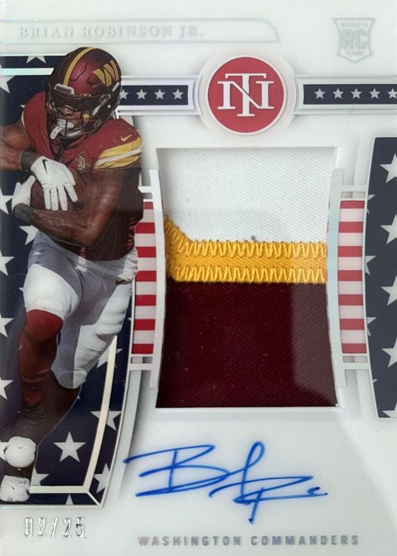 Brian Robinson Jr. 2022 National Treasures #184 Rookie Patch Auto - Stars & Stripes Holo Silver /25 RAW Price Guide