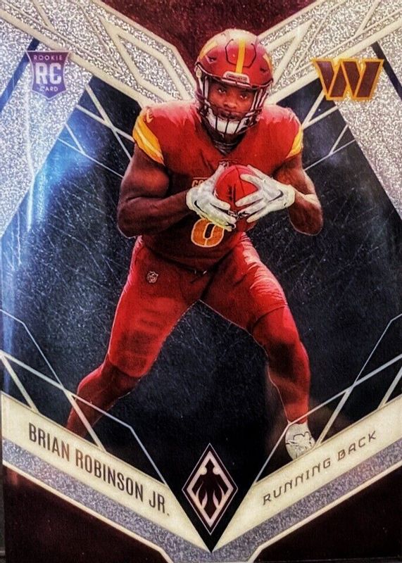 This card is 1 of 27 Brian Robinson Jr.'s card variations in the 2022 Phoenix set being tracked by Sports Card Investor, including Base, Color Burst, Red Mojo (/10), Silver, and Silver Lazer.