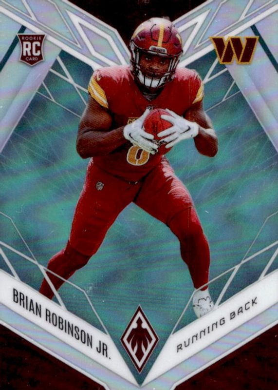 This card is 1 of 27 Brian Robinson Jr.'s card variations in the 2022 Phoenix set being tracked by Sports Card Investor, including Base, Color Burst, Onyx (/5), Red Mojo (/10), and Silver.
