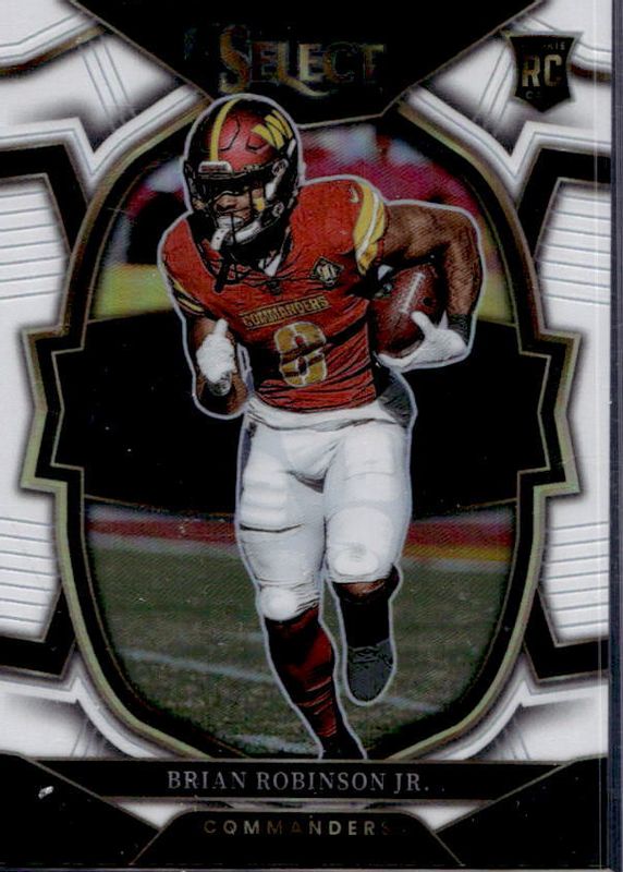 This card is 1 of 96 Brian Robinson Jr.'s card variations in the 2022 Select set being tracked by Sports Card Investor, including Concourse, Field Level, Suite Level, Concourse Black & Green Die-Cut, and Concourse Black & Red Die-Cut.