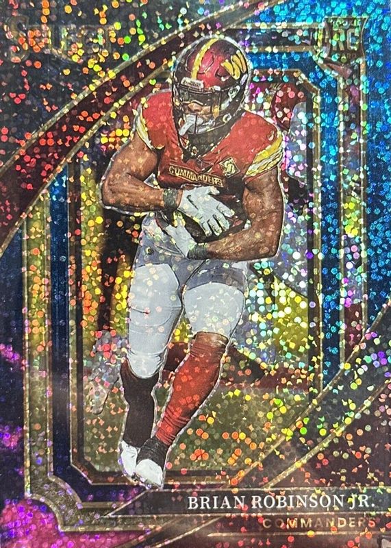This card is 1 of 96 Brian Robinson Jr.'s card variations in the 2022 Select set being tracked by Sports Card Investor, including Concourse, Field Level, Suite Level, Concourse Black & Green Die-Cut, and Concourse Black & Red Die-Cut.