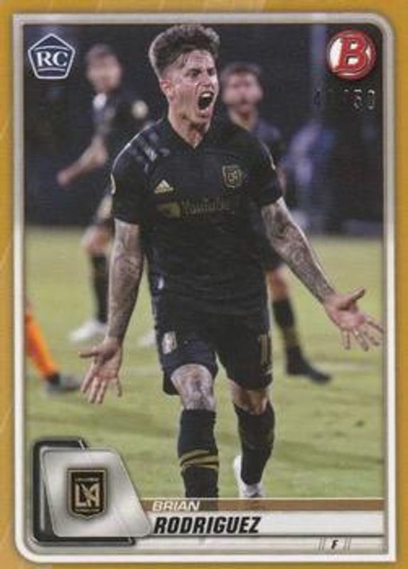 The Brian Rodriguez 2020 Bowman MLS #4 Gold /50 Rookie card is 1 of 8 Brian Rodriguez's card variations in the 2020 Bowman MLS set being tracked by Sports Card Investor, including Base, Blue /150, Yellow /75, Orange /25, and Red /5.