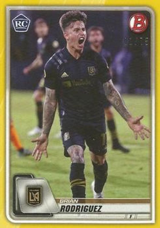 The Brian Rodriguez 2020 Bowman MLS #4 Yellow /75 Rookie card is 1 of 8 Brian Rodriguez's card variations in the 2020 Bowman MLS set being tracked by Sports Card Investor, including Base, Blue /150, Gold /50, Orange /25, and Red /5.
