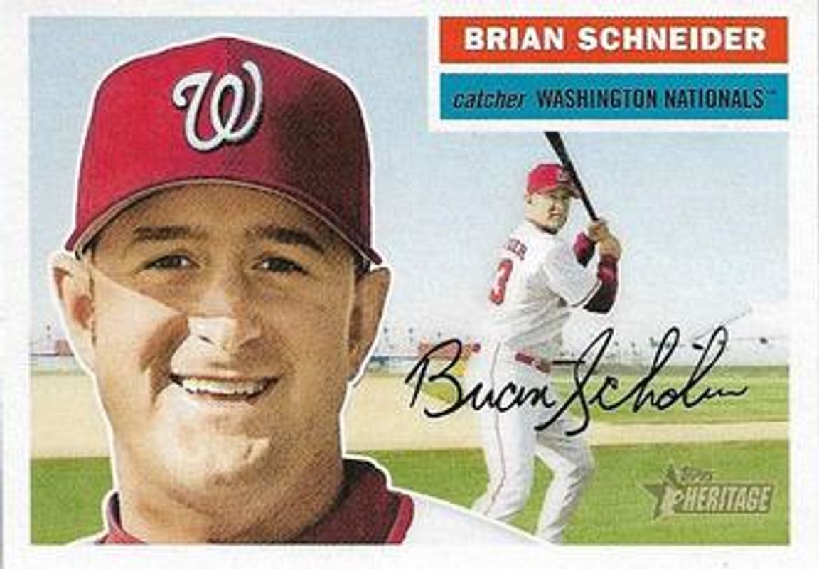 The Brian Schneider 2005 Topps Heritage #27b Base card is 1 of 2 Brian Schneider's card variations in the 2005 Topps Heritage set being tracked by Sports Card Investor, including Base.