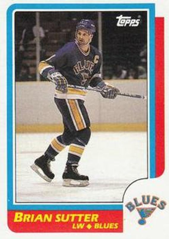 The Brian Sutter 1986 Topps #72 Base card is 1 of 2 Brian Sutter's card variations in the 1986 Topps set being tracked by Sports Card Investor, including Wax Box Bottom Panels Singles.