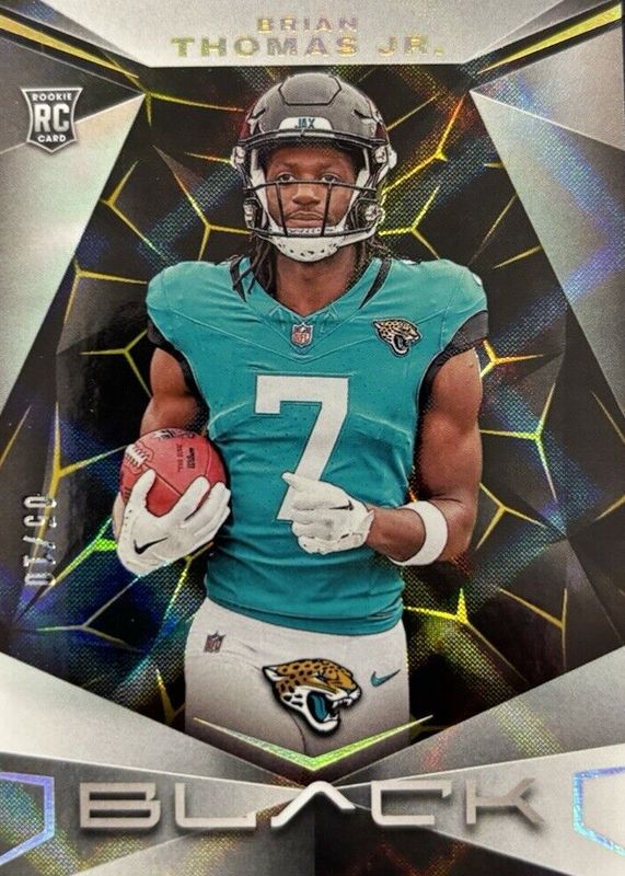 The Brian Thomas Jr. 2024 Black #113 Gold /10 Rookie card in Raw condition has not changed in price in the last 30 days and was last sold for $35.00 .