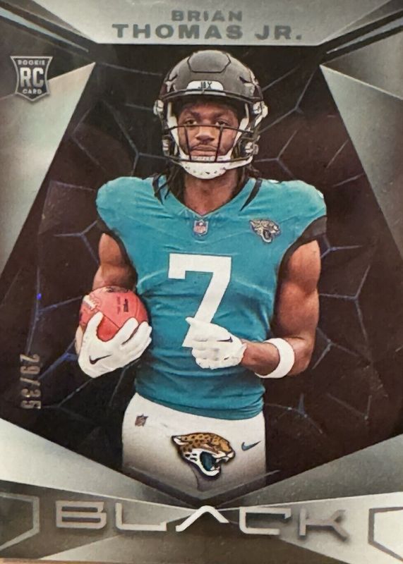 This card is 1 of 17 Brian Thomas Jr.'s card variations in the 2024 Black set being tracked by Sports Card Investor, including Base, Royal /99, Citrine /25, Emerald /15, and Gold /10.