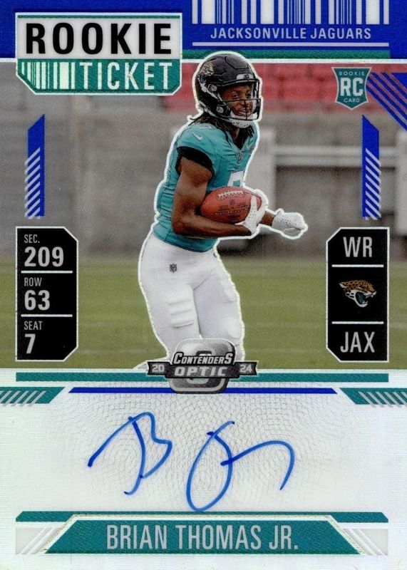 2024 Contenders Optic Brian Thomas Jr. Rookie Ticket Auto RC Blue Prizm #6/75