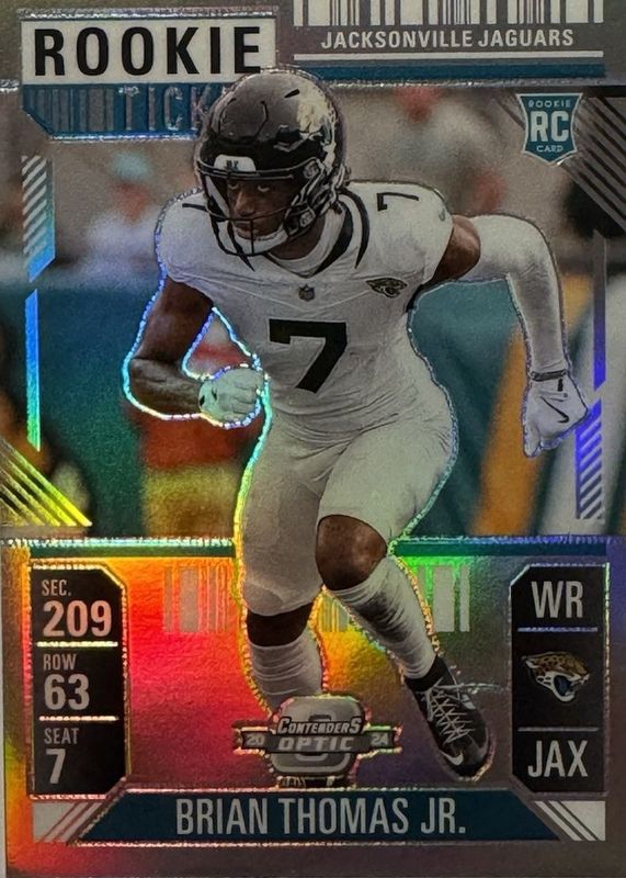 2024 Contenders Optic - Brian Thomas Jr - Rookie Ticket Silver Prizm RC Jags #65