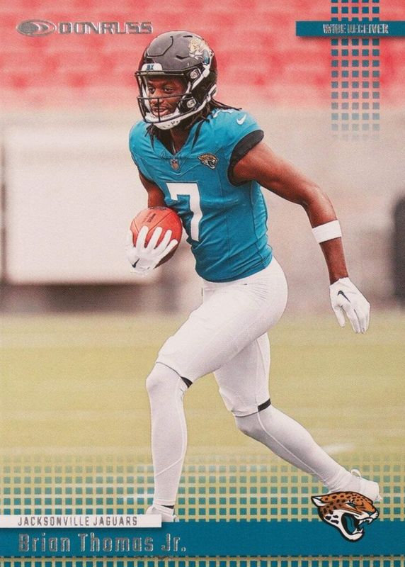 This card is 1 of 64 Brian Thomas Jr.'s card variations in the 2024 Donruss set being tracked by Sports Card Investor, including Base, Aqueous Test, Canvas, Jersey Number (/7), and No Name.