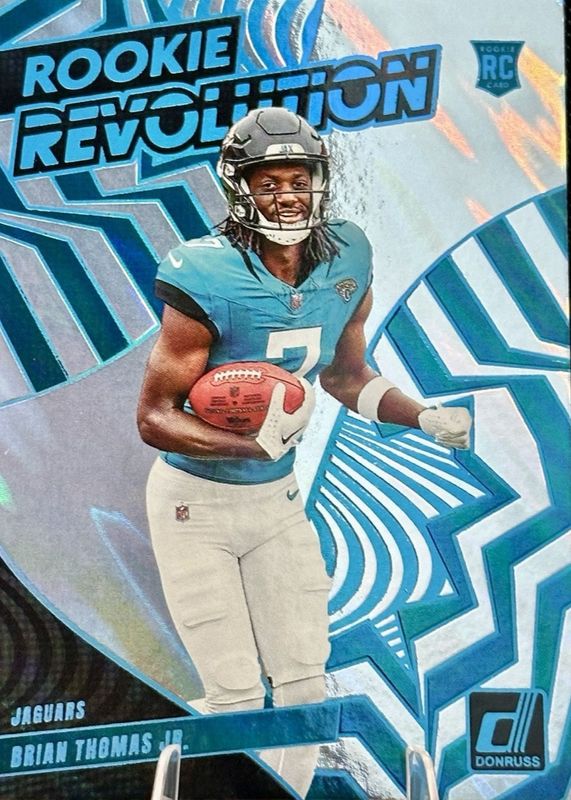 The Brian Thomas Jr. 2024 Donruss #8 Rookie Revolution - Lava /10 card in Raw condition has not changed in price in the last 30 days and was last sold for $155.00 .
