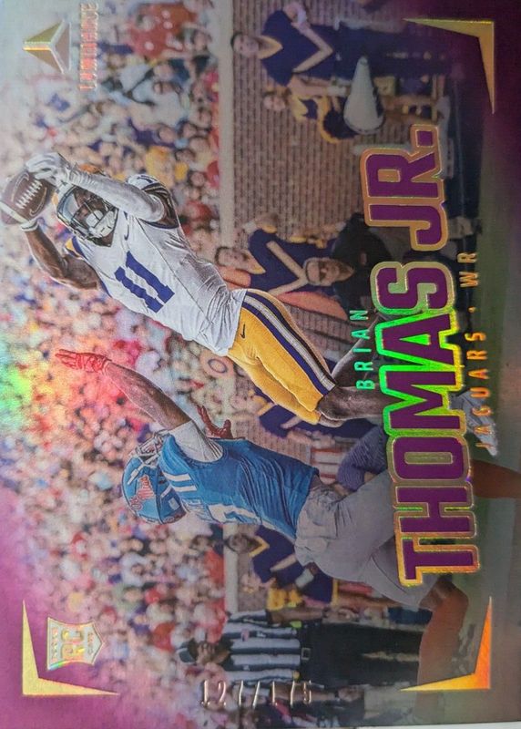 This card is 1 of 26 Brian Thomas Jr.'s card variations in the 2024 Luminance set being tracked by Sports Card Investor, including Horizontal Rookies, Vertical Rookies, Horizontal Rookies - Gold /299, Vertical Rookies - Gold /299, and Vertical Rookies - Purple /175.