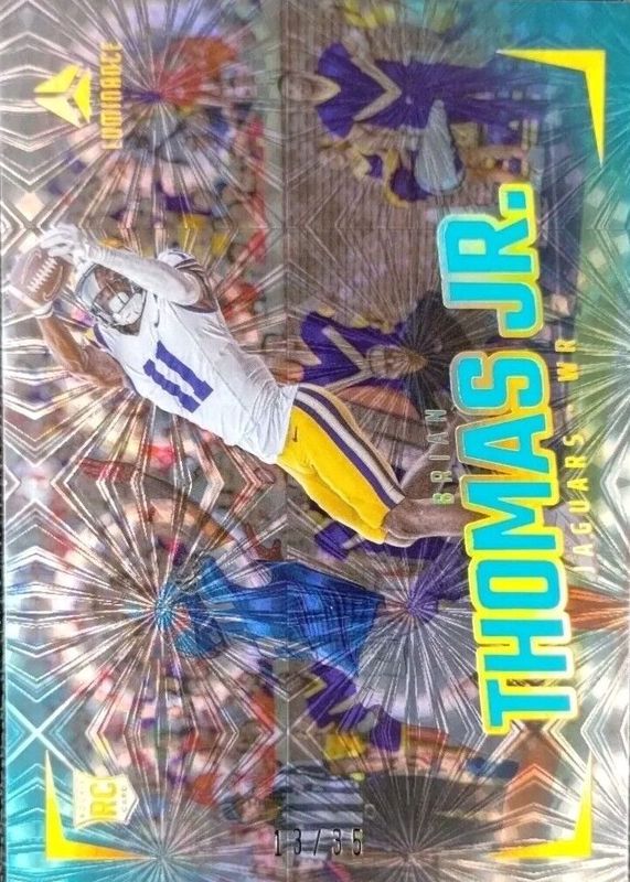 This card is 1 of 26 Brian Thomas Jr.'s card variations in the 2024 Luminance set being tracked by Sports Card Investor, including Horizontal Rookies, Vertical Rookies, Horizontal Rookies - Gold /299, Vertical Rookies - Gold /299, and Horizontal Rookies - Purple /175.