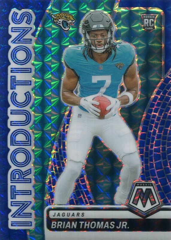Auctions Ending Soon for Brian Thomas Jr. 2024 Mosaic #7 Introductions - Blue /99 Rookie RAW