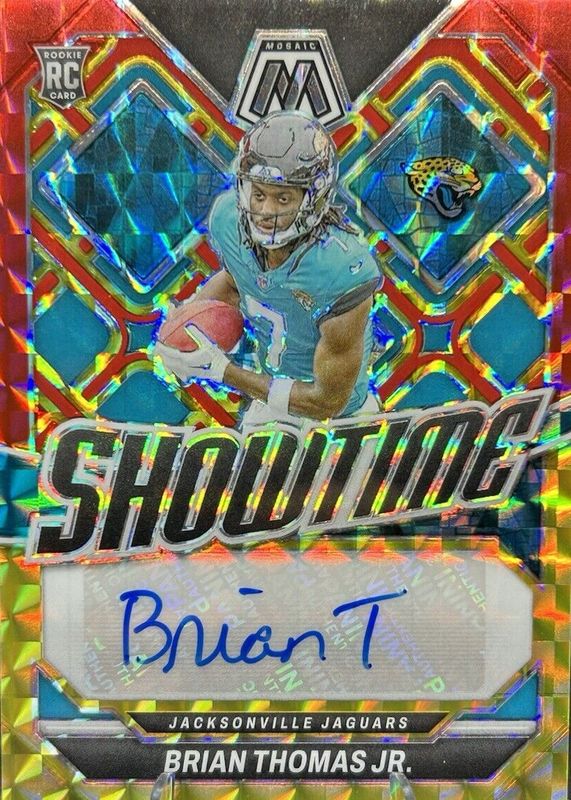 2024 Mosaic Brian Thomas Jr. Showtime RC Choice Fusion Red Yellow Auto #SS-BTJ