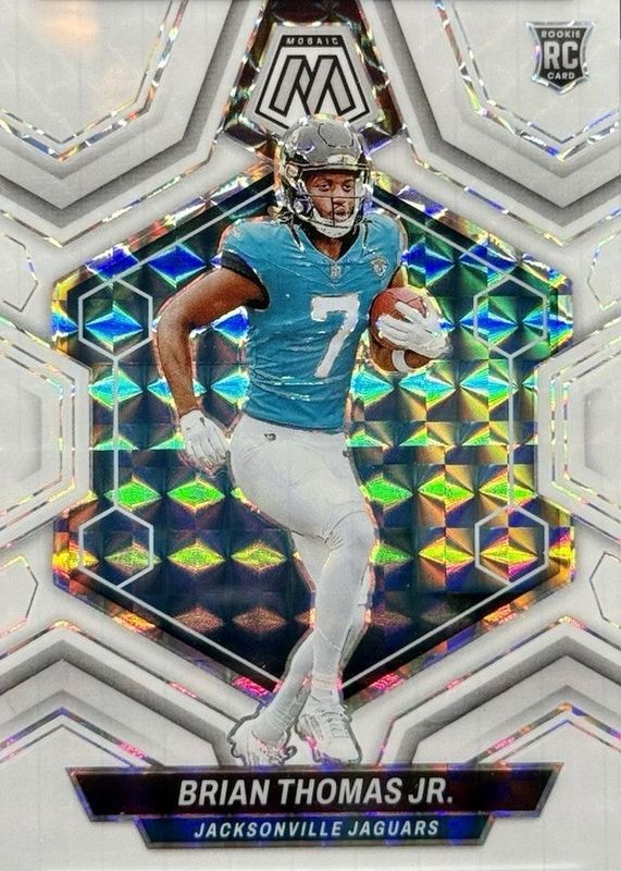 This card is 1 of 159 Brian Thomas Jr.'s card variations in the 2024 Mosaic set being tracked by Sports Card Investor, including Base, NFL Debut, Green, Mosaic, and NFL Debut - Green.