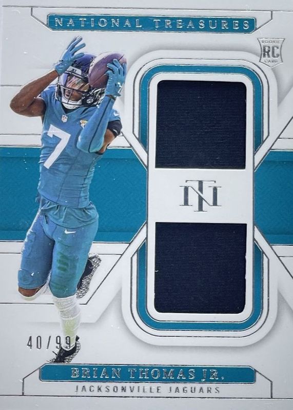 BRIAN THOMAS JR. 2024 NATIONAL TREASURES ROOKIE DUAL PATCH B RC /99 RC Jaguars
