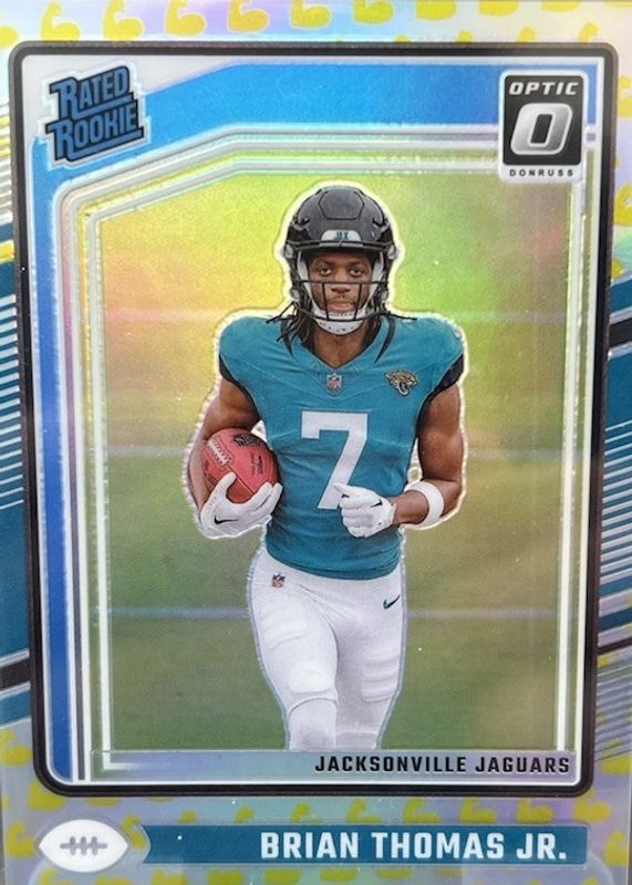 This card is 1 of 103 Brian Thomas Jr.'s card variations in the 2024 Optic set being tracked by Sports Card Investor, including Base, Blue Hyper, Blue Scope, Green Hyper, and Green Velocity.
