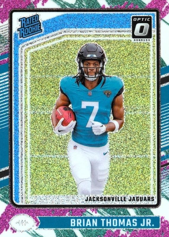 This card is 1 of 103 Brian Thomas Jr.'s card variations in the 2024 Optic set being tracked by Sports Card Investor, including Base, Blue Hyper, Blue Scope, Green Hyper, and Green Velocity.