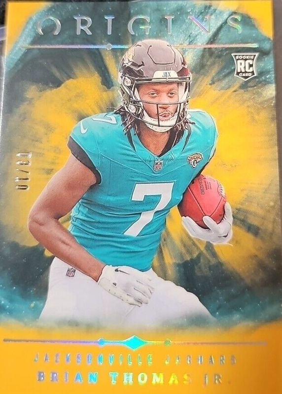 This card is 1 of 25 Brian Thomas Jr.'s card variations in the 2024 Origins set being tracked by Sports Card Investor, including Base, Holo Red /299, Holo Orange /149, Red /149, and Orange /125.