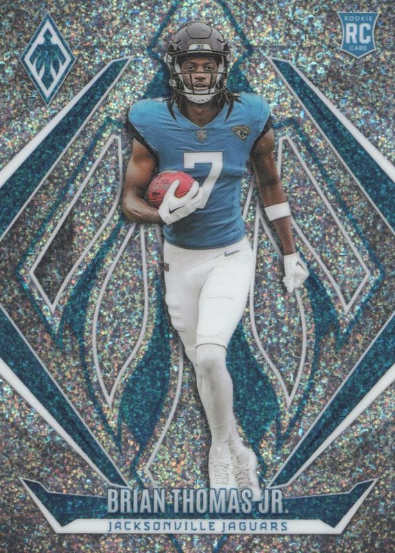 This card is 1 of 96 Brian Thomas Jr.'s card variations in the 2024 Phoenix set being tracked by Sports Card Investor, including Base, Hyper, Ice, Lazer, and Orange.